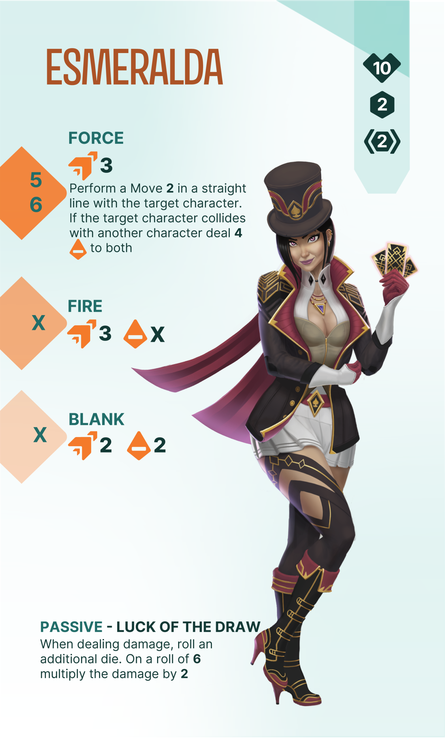 Esmeralda visits Myra once a year with the Caravan, a group of traders, artists and adventurers. She grew up in the Caravan and never left. After obtaining a magical deck of cards she became quite the proficient mage and uses her new found skills to participate in the circus shows performed by members of the Caravan.