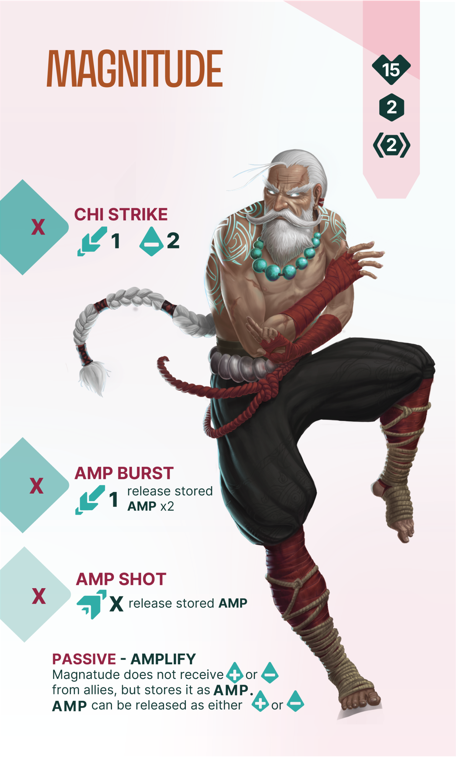 The whole is greater than the sum of the parts. With his psionic powers Magnitude stores forces aimed at him to execute powerful moves to his enemies.